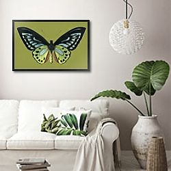 Орнитоптера приам на зеленом фоне