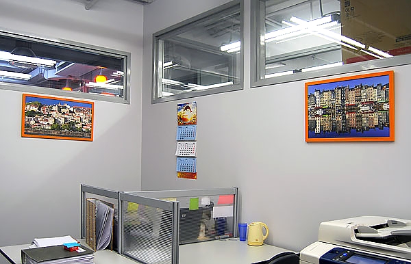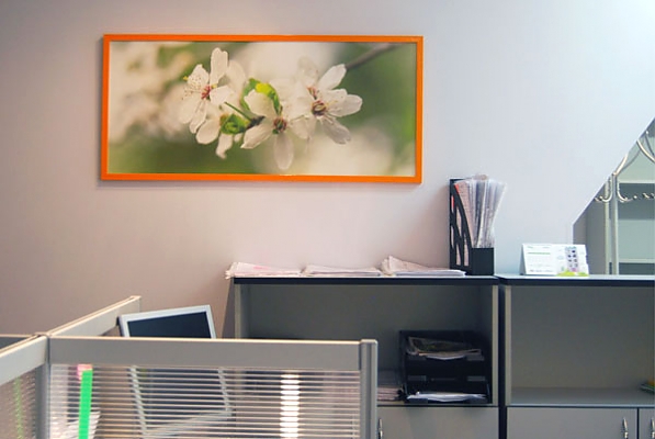 Оформления офиса компании НДВ-Недвижимость постерами в рамах и на галерейном подрамнике
